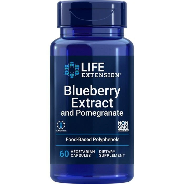 Life Extension Blueberry Extract and Pomegranate Capsules – Compared with many fruits and vegetables, blueberries contain some of the most potent compounds for inhibiting oxidative stress and promoting a healthy inflammatory response. Blueberry Extract and Pomegranate is formulated from wild blueberries and includes a standardized pomegranate extract to provide additional antioxidants.