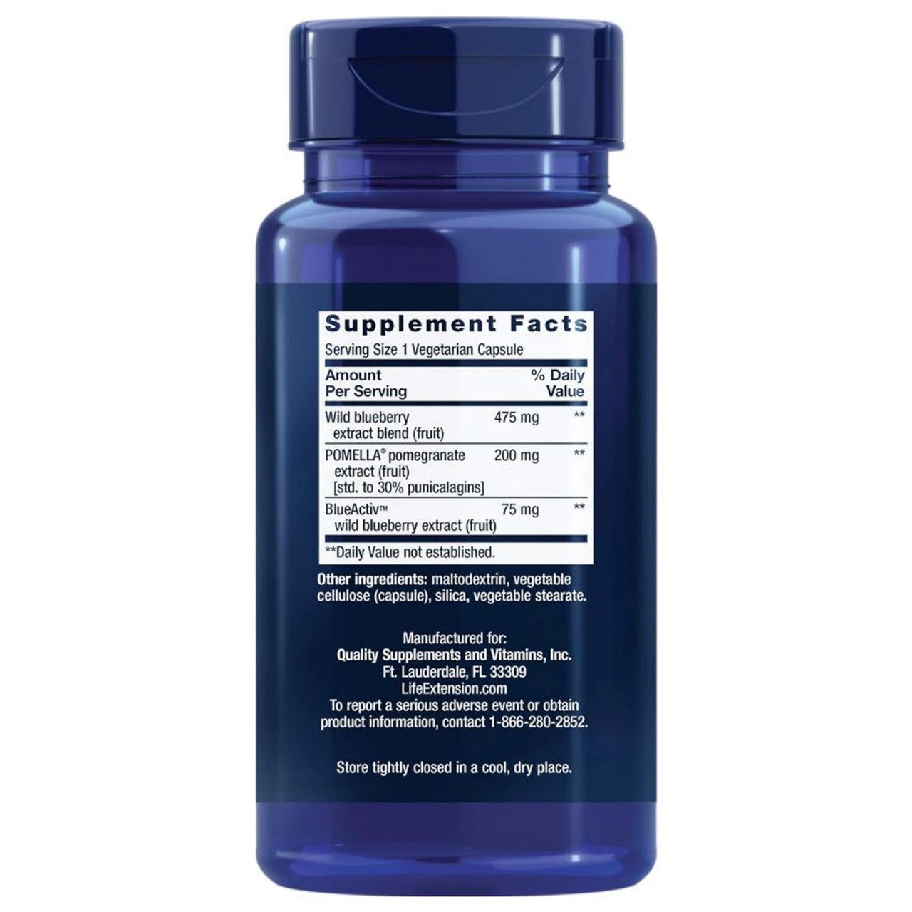 Life Extension Blueberry Extract with Pomegranate 60 Vegecaps Ingredients