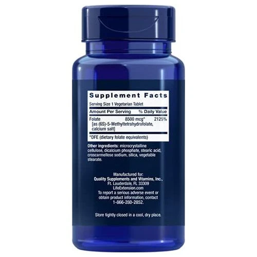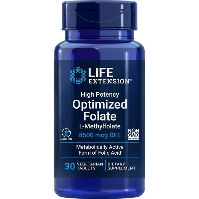 Life Extension High Potency Optimized Folate- Our High Potency Optimized Folate is a cardiovascular health supplement that also supports cognitive health and more with 8500 mcg of metabolically active 5-MTHF. Maintaining normal levels of homocysteine, a metabolic byproduct, is associated with both cardiovascular and cognitive health. Folate, a B vitamin, helps maintain homocysteine levels already within normal range.