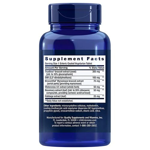 Life Extension Optimized Broccoli and Cruciferous Blend – This formula contains an innovative TrueBroc extract to maximize the cellular health benefits of broccoli, along with extracts from watercress and cabbage, DIM (diindolylmethane), and more. Cruciferous vegetables are healthy. But most of us cook those vegetables first, which decreases the amount of health-promoting compounds. Rather than try to get everyone to eat their cruciferous vegetables raw, We have created Optimized Broccoli. It gives you cell-protective and health-promoting benefits, without the leafy greens.