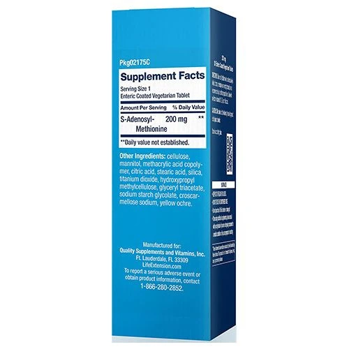 Life Extension SAMe Enteric-Coated Vegetarian Tablet- Our Best Seller SAMe, or S-Adenosyl-Methionine, benefits many critical metabolic functions in the body. This amazing compound helps maintain a stable mood and supports both joint and liver health. SAMe participates in many critical metabolic functions by donating methyl groups to other molecules. Methyl groups need to be transferred between compounds in the body to help with things like neurotransmitter signaling and protein function. Laboratory research has shown that SAMe levels appear to decline over time.