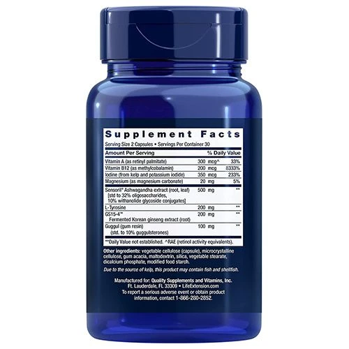 Life Extension Triple Action Thyroid Capsules – Get comprehensive thyroid support with ashwagandha benefits in Triple Action Thyroid, our Best in the Class supplement that combines potent nutrients that support healthy thyroid function. The thyroid produces hormones that are critical for energy, metabolism, healthy weight management, and brain health. Triple Action Thyroid with ashwagandha combines potent nutrients that support healthy thyroid function, making it our Best in Class formula for thyroid health support.