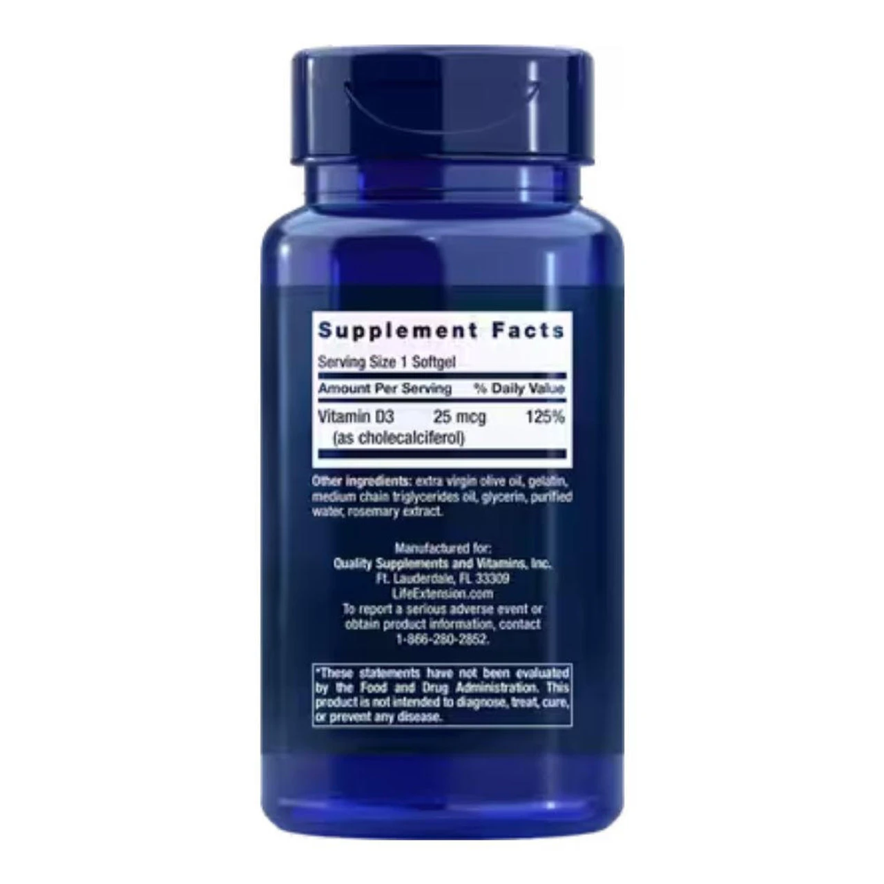 Life Extension Vitamin D3 1000 IU 250 Caps Ingredients