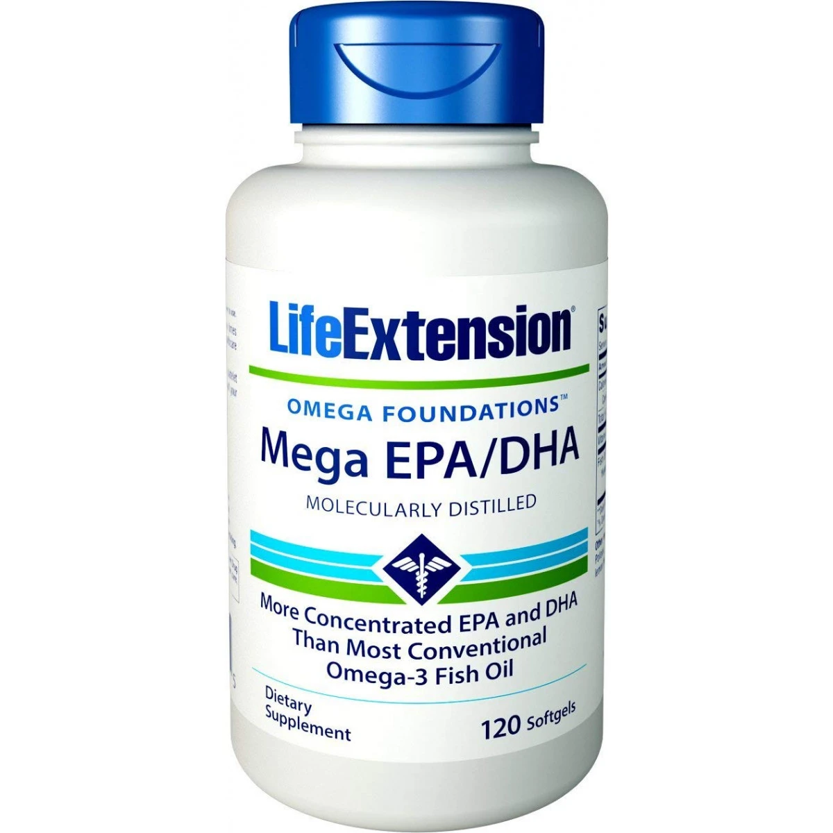 Life extension mega epa dha 120 soft gels supports cardiovascular health and increased life span.